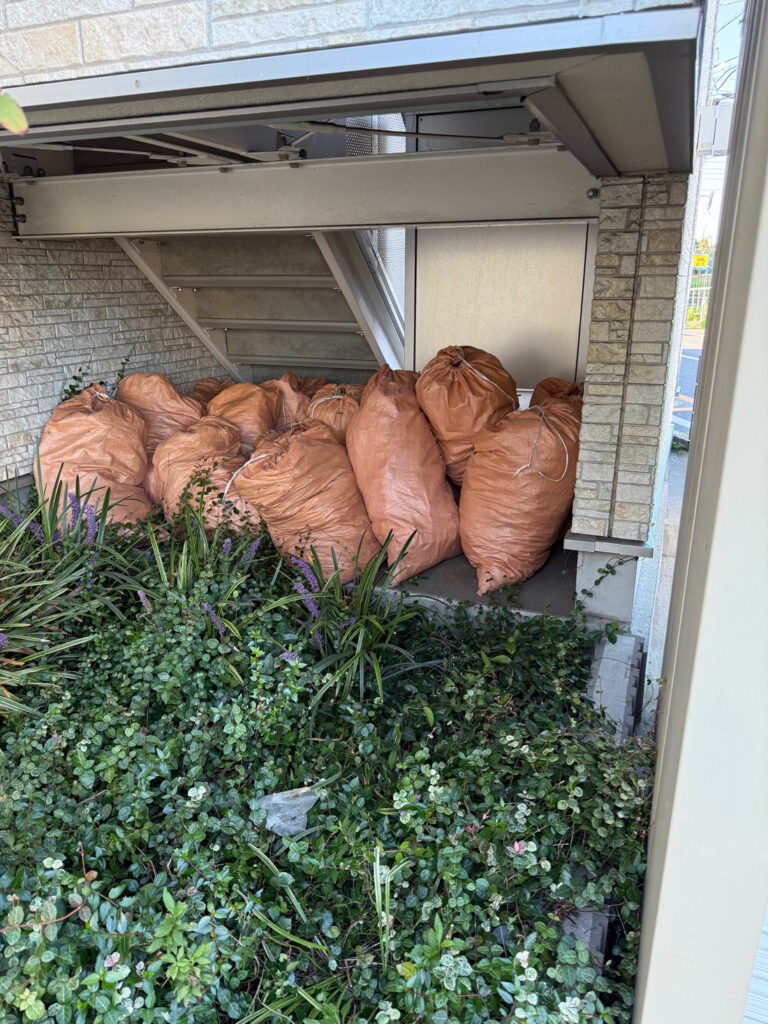 ・切りゴミのずた袋ですが、溢れても良いので階段下にまとめて置くようにして下さい。