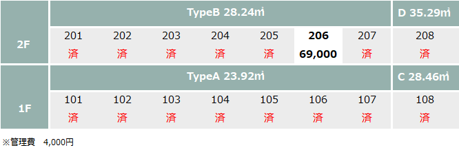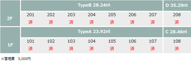 - *賃料・管理費:最下段の一覧表ご確認ください