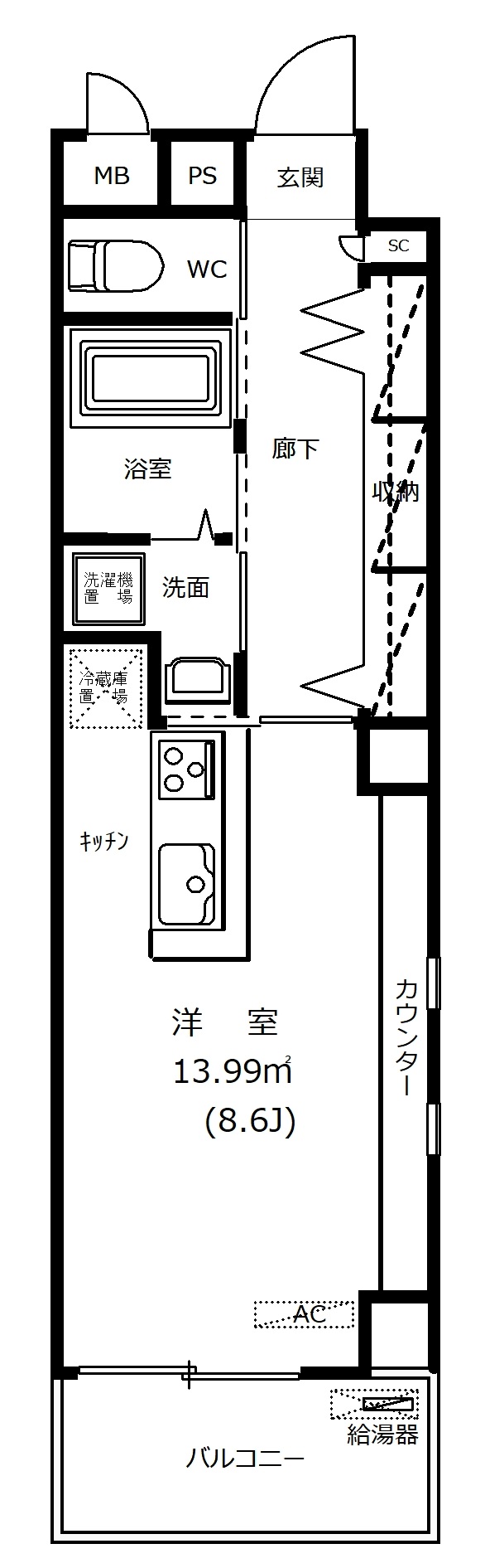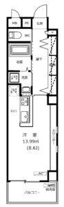 専有面積は31㎡!1Rはやや大きめの広さ。扉はすべて引き戸にし、限られた広さを有効に活用しています。