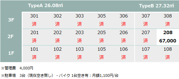 *駐車場 : 車3台(11,000円/台)現在空き無し